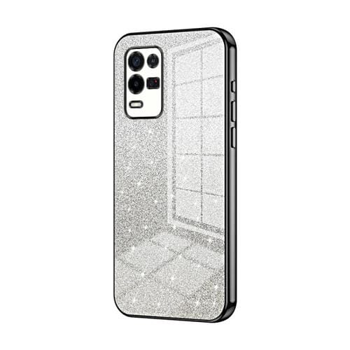 Para Oppo K9X Estuche para Teléfono Galvanizado con Polvo de Brillo Degradado (Negro)