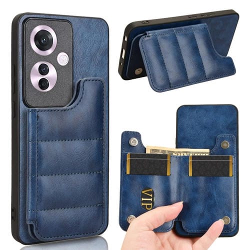 Para Oppo Reno11 a Versión Jp Funda para Teléfono con Bolsa para Tarjetas de Costura con Patrón de Vaca (Azul)