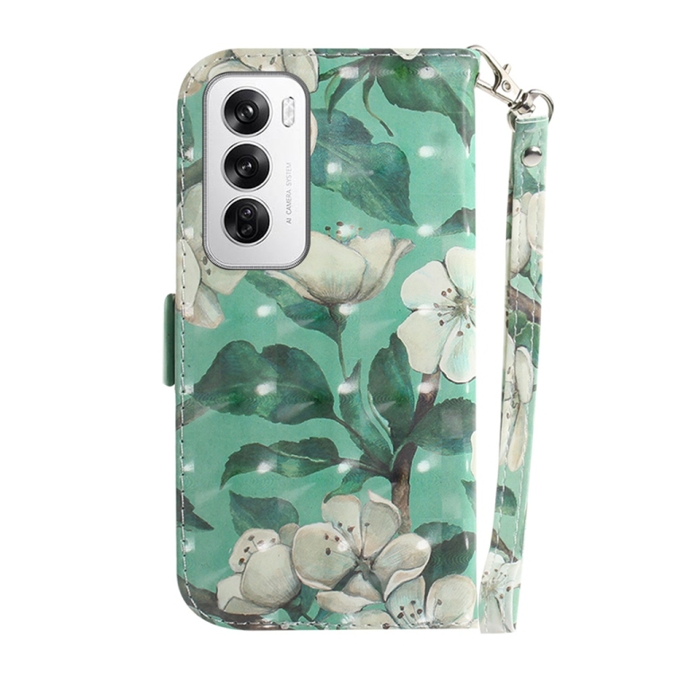 Pour OPPO Reno12 5G Global Étui en cuir à rabat horizontal couleur 3D (fleur aquarelle)