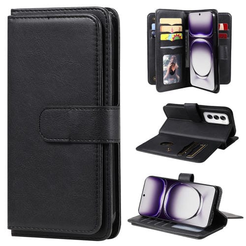 Para Oppo Reno12 5G Global Cartera Multifunción 10 Ranuras para Tarjetas Funda de Cuero para Teléfono (Negro)