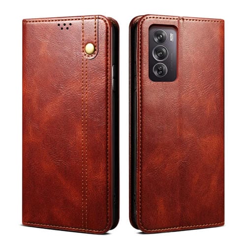 Para Oppo Reno12 Pro 5G Global Oil Wax Crazy Horse Texture Funda de Cuero para Teléfono (Marrón)