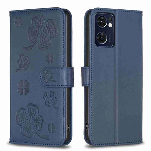 Para Oppo Reno7 5G / Find X5 Lite Funda para Teléfono de Cuero con Relieve de Cuatro Hojas (Azul)