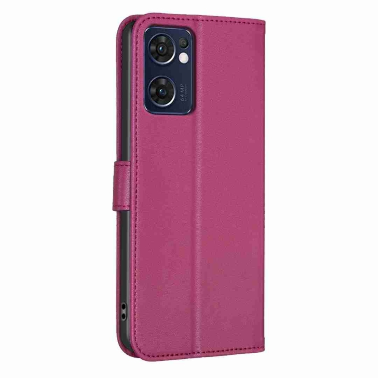 Para Oppo Reno7 5G / Find X5 Lite Funda para Teléfono de Cuero con Relieve de Cuatro Hojas (Rojo Rosa)