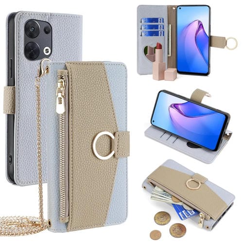 Para Oppo Reno8 5G Crossbody Litchi Texture Funda de Cuero para Teléfono (Azul)