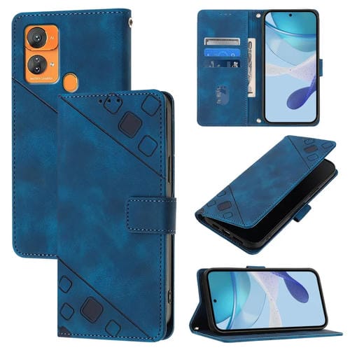 Funda de Cuero para Oukitel C33 Skin Feel con Relieve (Azul)