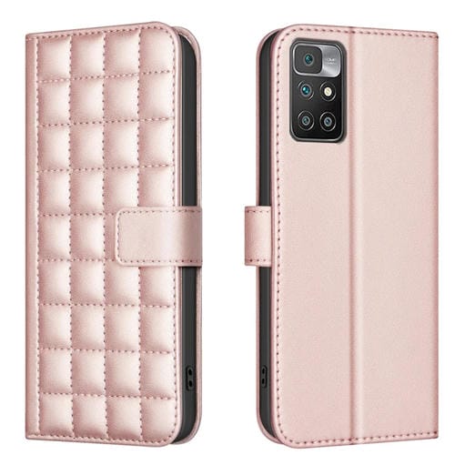 Para Redmi 10 2022 / Note 11 4G Funda de Cuero para Teléfono con Textura Cuadrada (Oro Rosa)
