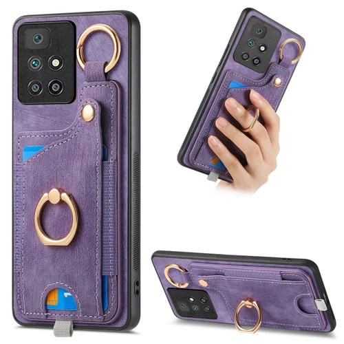 Para Redmi 10 Funda para Teléfono con Bolsa para Tarjeta con Anillo y Sensación de Piel Retro con Lazo para Colgar (Púrpura)