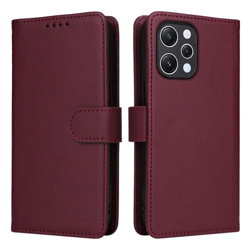 Para Redmi 12 4G Betopnice Bn-005 2 En 1 Funda de Teléfono de Cuero Genuino de Imitación Desmontable (Rojo Vino)