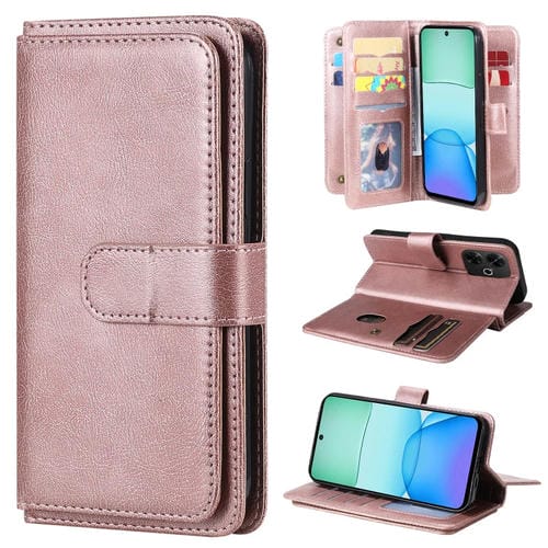 Para Redmi 13 4G Global Cartera Multifunción 10 Ranuras para Tarjetas Funda de Cuero para Teléfono (Oro Rosa)