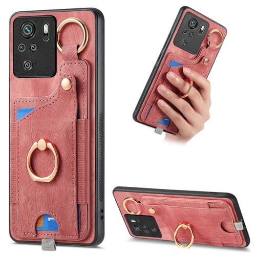 Para Redmi Note 10 4G Funda para Teléfono con Bolsa para Tarjeta con Anillo y Sensación de Piel Retro con Lazo para Colgar (Rosa)
