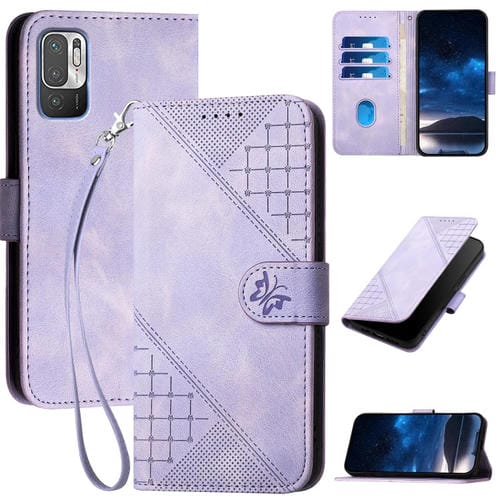 Para Redmi Note 10 Je Versión Yx0080 Funda de Cuero con Tapa con Patrón En Relieve de Mariposa y Cuadrícula con Cordón (Morado Claro)