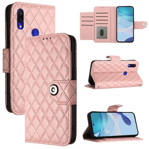 Para Redmi Note 7/7 Pro / 7S Funda para Teléfono de Cuero con Tapa con Textura Rómbica y Cordón (Rosa Coral)