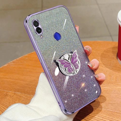 Para Redmi Note 7 Funda para Teléfono de TPU con Soporte de Mariposa con Brillo Degradado Plateado (Púrpura)