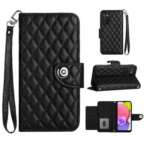 Funda de Cuero Samsung Galaxy A03S Eu con Tapa Textura Rómbica y Cordón (Negro)