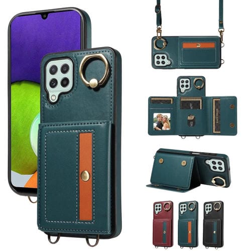 Funda para Teléfono Samsung Galaxy A12 Crossbody Wallet Bag Ring Holder de Cuero (Verde)