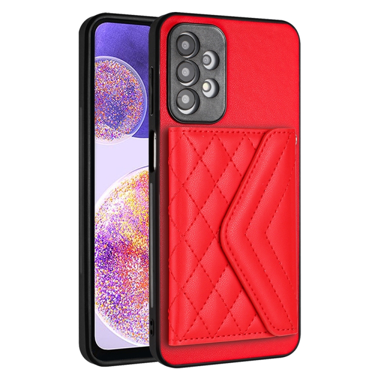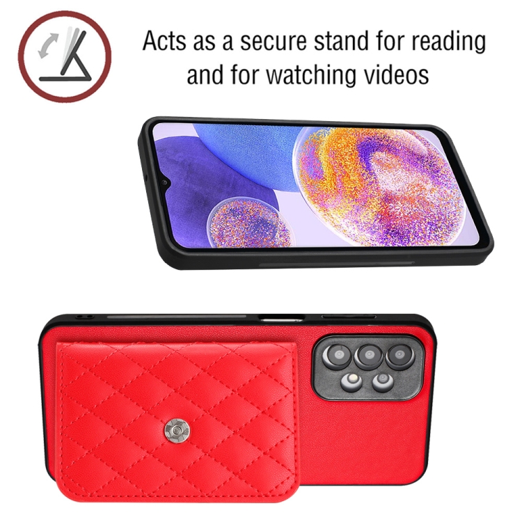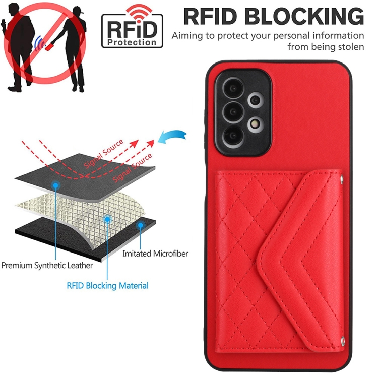 Funda para Teléfono Samsung Galaxy A13 4G Rfid con Bolsa para Tarjetas Textura Rómbica y Cordón Largo (Rojo)