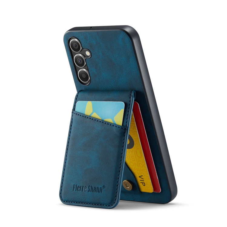 Funda para teléfono Samsung Galaxy A14 5G Fierre Shann Crazy Horse Titular de Tarjeta Contraportada Pu (Azul)