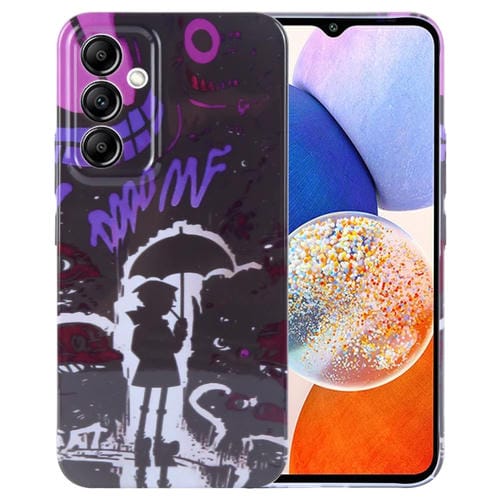 Funda para Teléfono Samsung Galaxy A14 5G PC con Orificio Preciso y Patrón Pintado (Paraguas Negro y Morado)