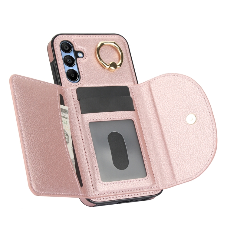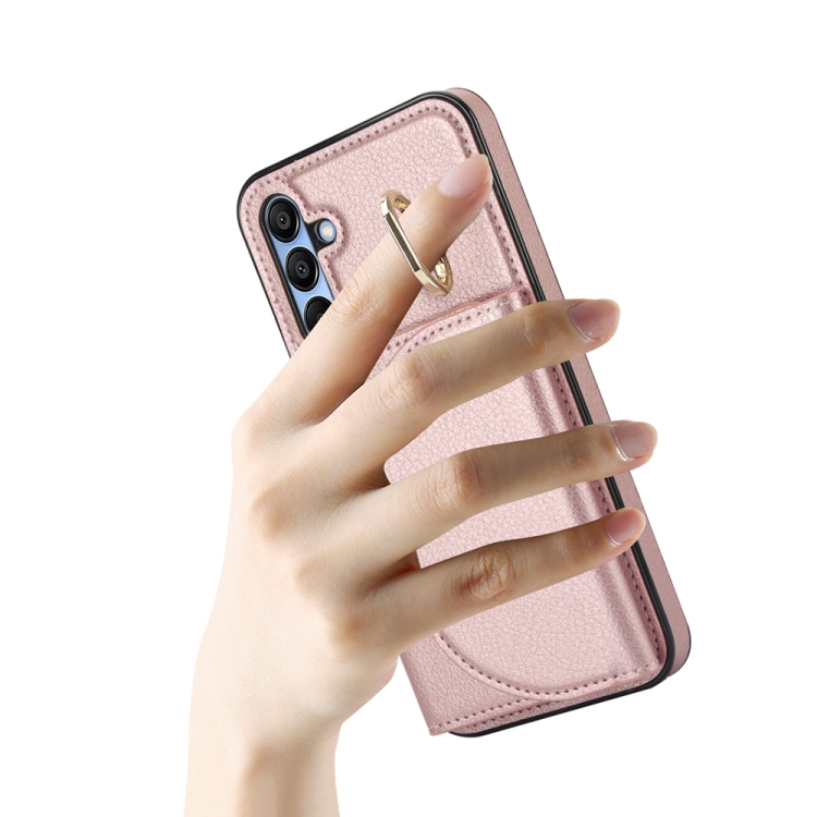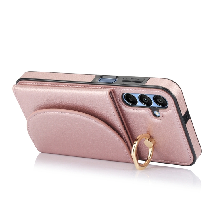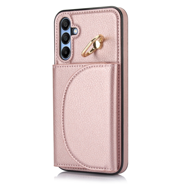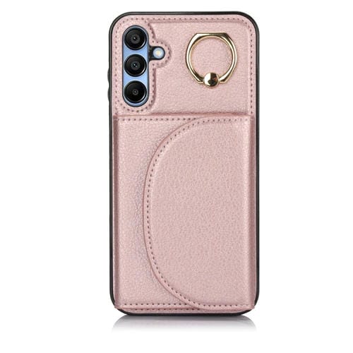Funda para Teléfono Samsung Galaxy A15 4G 5G Ym007 con Soporte para Anillo y Tarjeta Sensación de Piel (Oro Rosa)