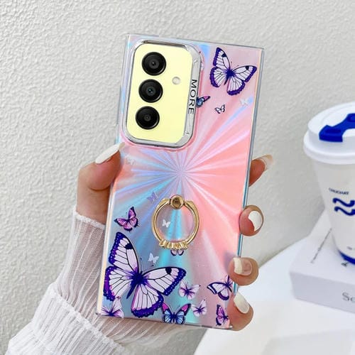 Estuche para Teléfono Samsung Galaxy A15 5G con Soporte Anillo Mariposa Láser Galvanoplastia (Morado)