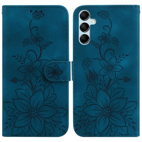 Funda de Cuero para Samsung Galaxy A15 con Relieve Lily (Azul Oscuro)