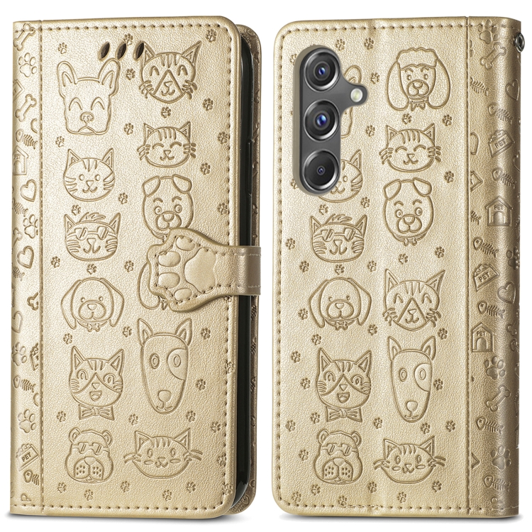 Funda para Teléfono Samsung Galaxy A15 Cuero Relieve Perro y Gato (Dorado)