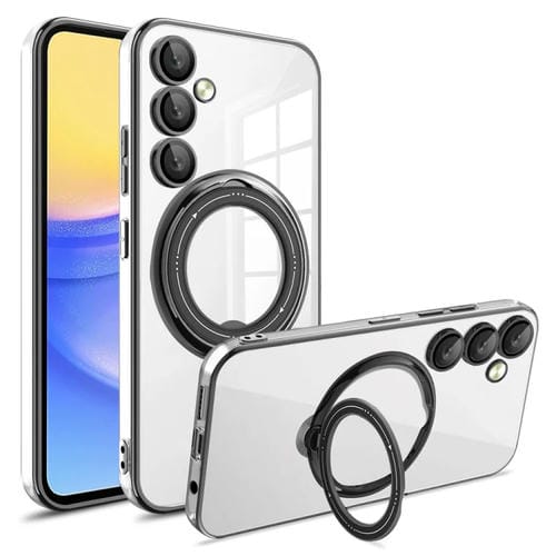 Estuche para teléfono Samsung Galaxy A15 Galvanoplastia Magsafe Soporte de Rotación 360 grados (Negro)