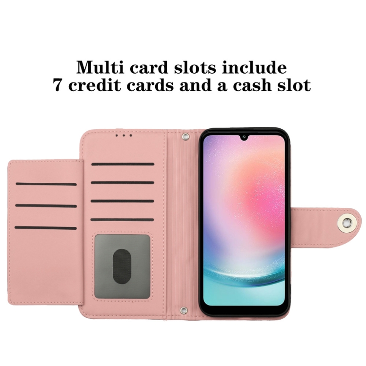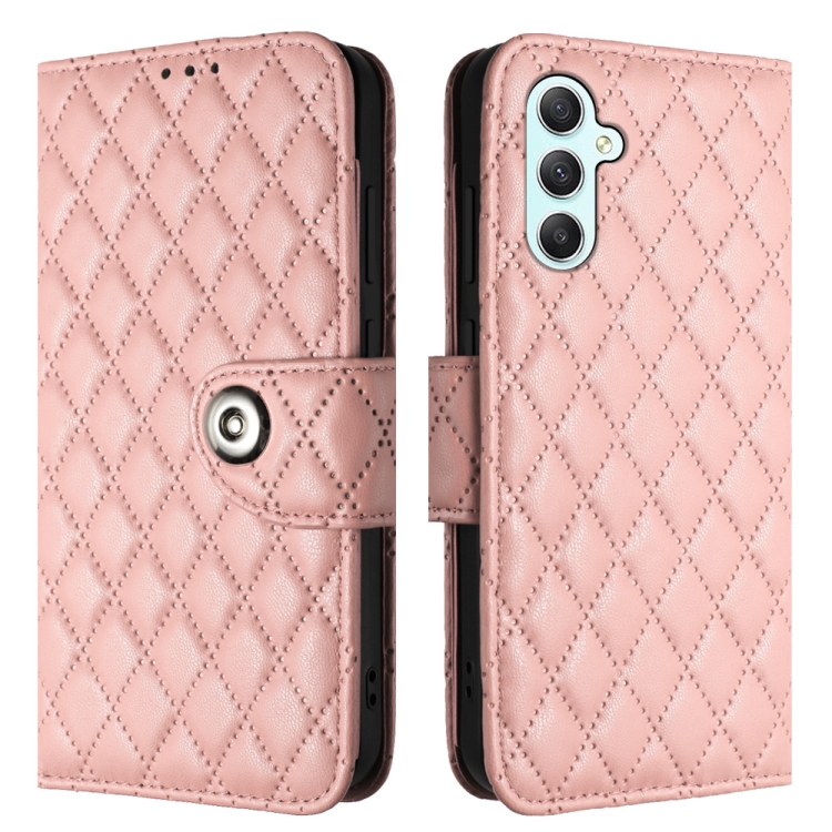 Funda para Teléfono Samsung Galaxy A24 4G con Tapa de Cuero Textura Rómbica y Cordón (Rosa Coral)