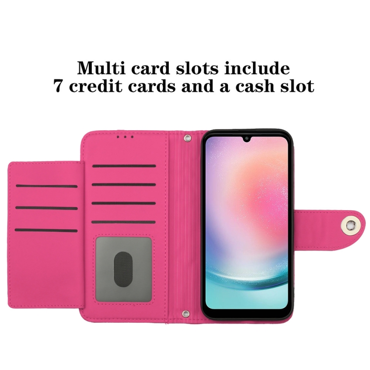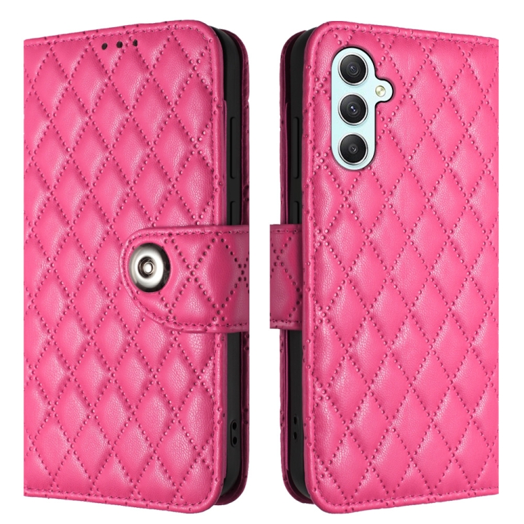 Funda para Teléfono Samsung Galaxy A34 con Tapa de Cuero Textura Rómbica y Cordón (Rojo Rosa)