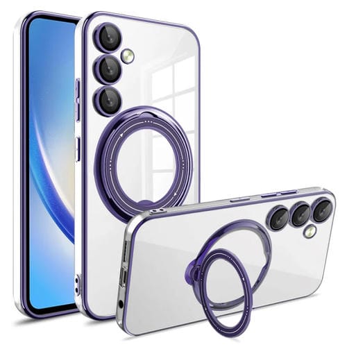 Estuche para Teléfono Samsung Galaxy A34 Galvanoplastia Magsafe Soporte de Rotación 360° (Púrpura Oscuro)
