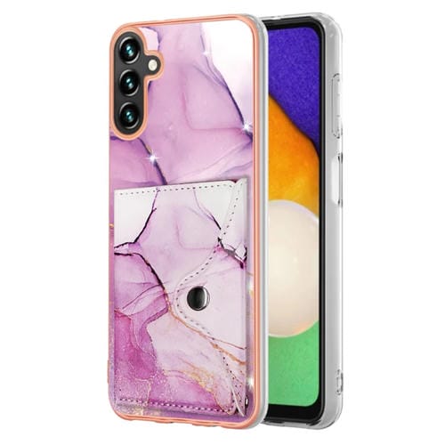 Estuche para Teléfono Samsung Galaxy A35 con Ranura para Tarjeta Imd Patrón Mármol (Oro Rosa Púrpura)