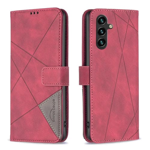 Funda para Teléfono Samsung Galaxy A35 Cuero Textura de Rombo Hebilla Magnética (Rojo)