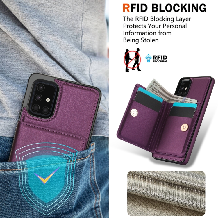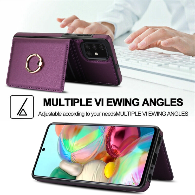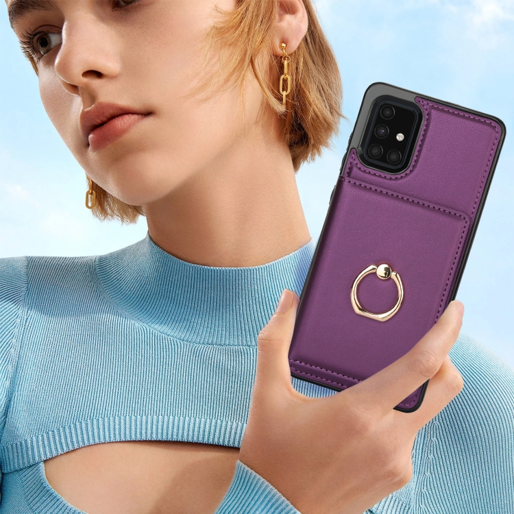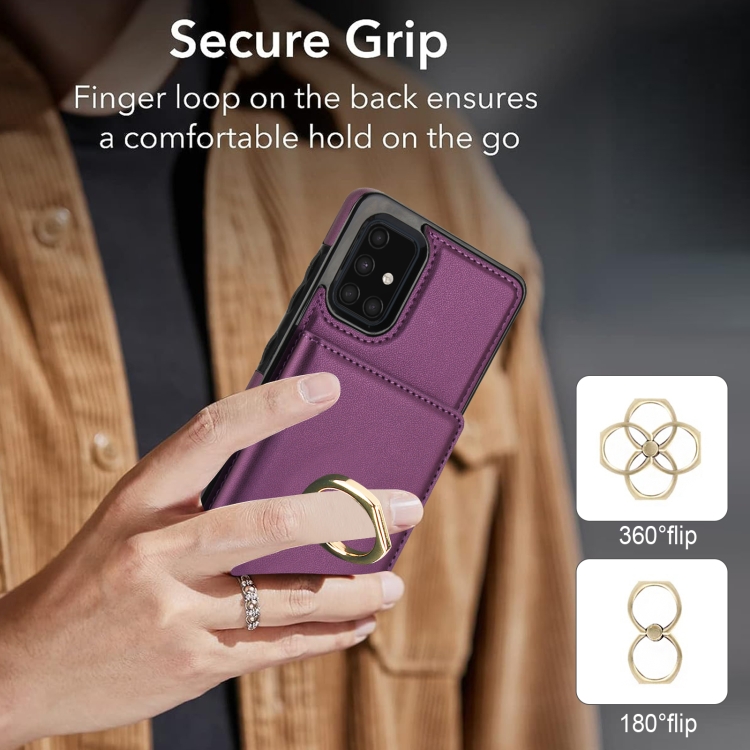 Estuche para teléfono Samsung Galaxy A51 4G Rfid Tarjeta Antirrobo con Soporte para Anillo (Púrpura Oscuro)