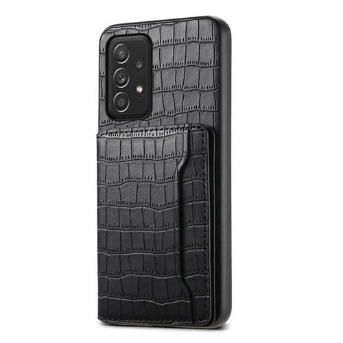 Funda para teléfono Samsung Galaxy A52 5G diseño bolsa para tarjetas textura de cocodrilo (Negro)