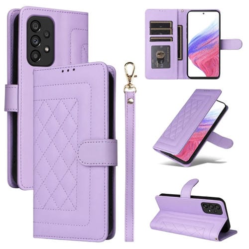 Estuche para Teléfono Samsung Galaxy A53 con Tapa de Cuero Diamond Lattice (Púrpura Claro)