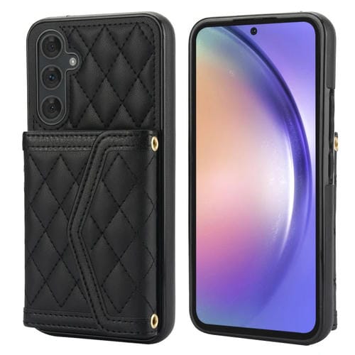 Estuche para Teléfono Samsung Galaxy A54 4G 5G con Bolsa para Tarjetas Textura Rómbica Empalme Cordón Largo (Negro)