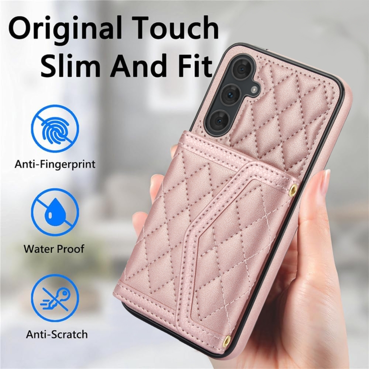 Estuche para Teléfono Samsung Galaxy A54 4G / 5G con Bolsa para Tarjetas Textura Rómbica Empalme Cordón Largo (Oro Rosa)