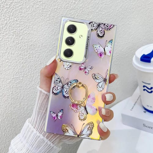 Estuche para Teléfono Samsung Galaxy A54 5G con Soporte Anillo Mariposa Láser Galvanoplastia (Rosado)