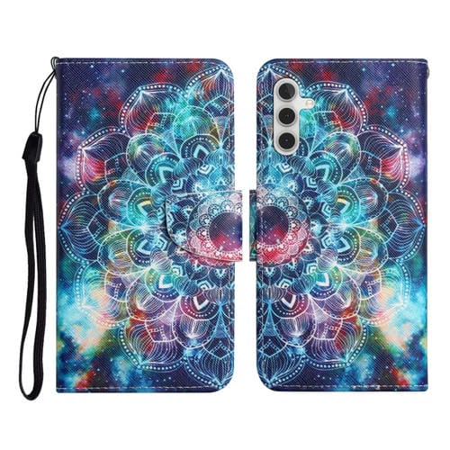 Funda de Cuero Samsung Galaxy A55 con Tapa y Patrón de Dibujo Star Mandala