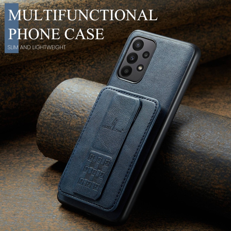 Funda para Teléfono Samsung Galaxy A72 5G / 4G Fierre Shann Oil Wax con Tarjetero de Cuero de Vaca (Azul)