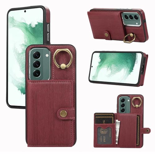 Funda para Teléfono Samsung Galaxy S22+ 5G con Soporte para Anillo y Billetera (Rojo Oscuro)