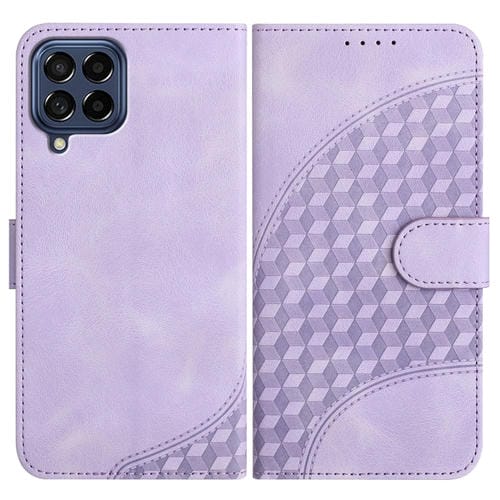 Funda para Samsung Galaxy M53 5G Yx0060 de Cuero con Relieve y Cabeza de Elefante con Cordón (Púrpura Claro)