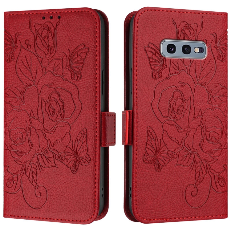 Estuche para teléfono Samsung Galaxy S10E Cuero Antirrobo RFID Rosa en Relieve (Rojo)