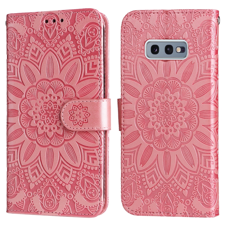 Estuche para Teléfono Samsung Galaxy S10E Cuero Estampado Girasol en Relieve (Rosa)