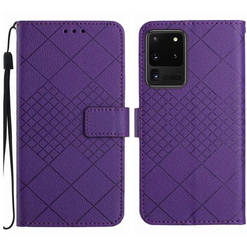 Funda para Samsung Galaxy S20 Ultra Cuero Textura Rejilla Rómbica (Púrpura)