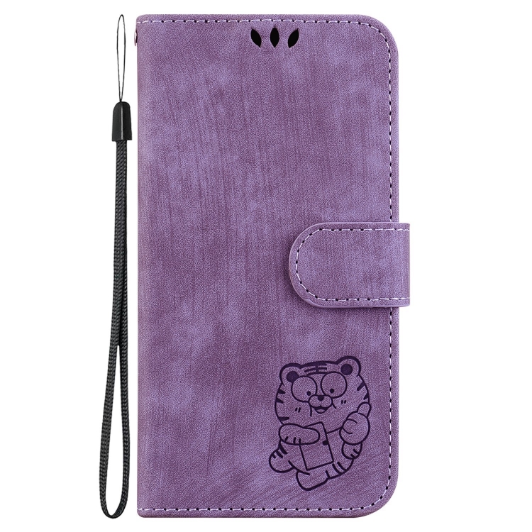 Para Samsung Galaxy S21 5G Funda de cuero con relieve Little Tiger (púrpura)