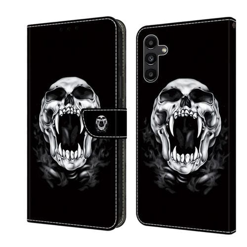 Funda de Cuero Samsung Galaxy S21 5G Pintada con Cristales Calavera