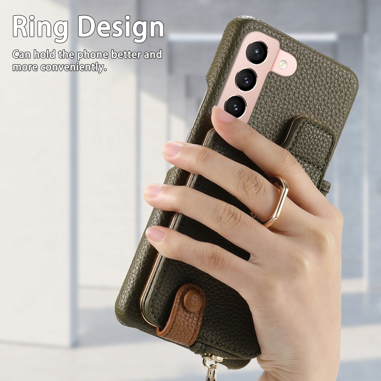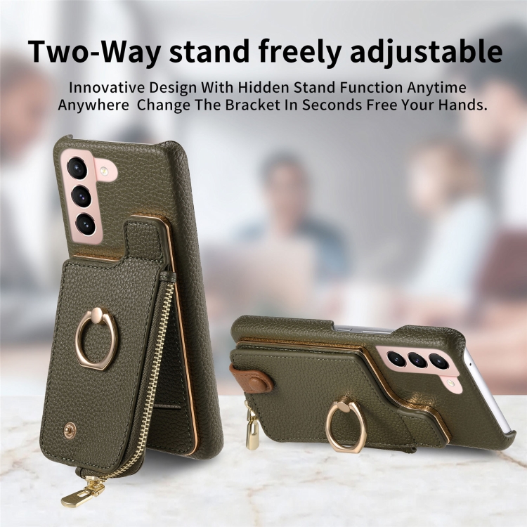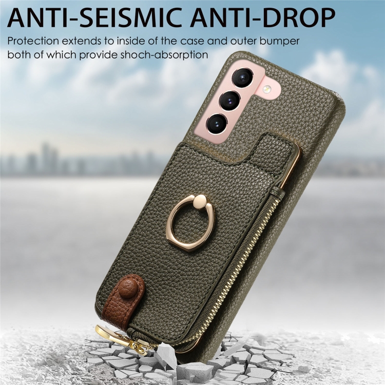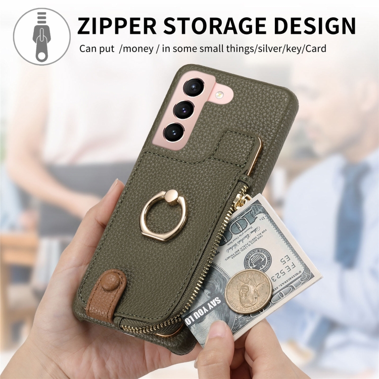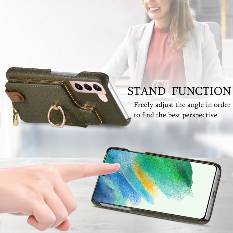 Funda para Samsung Galaxy S21 5G Litchi Leather Oil Edge Ring Zipper Wallet Back (Verde)