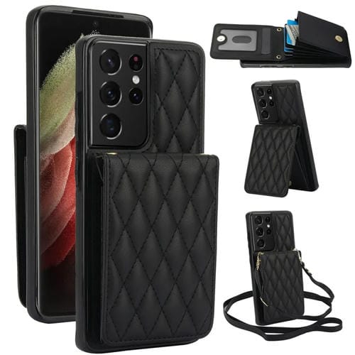 Funda cruzada Samsung Galaxy S21 Ultra 5G Ym015 con bolsa para tarjeta Rómbica RFID (Negro)