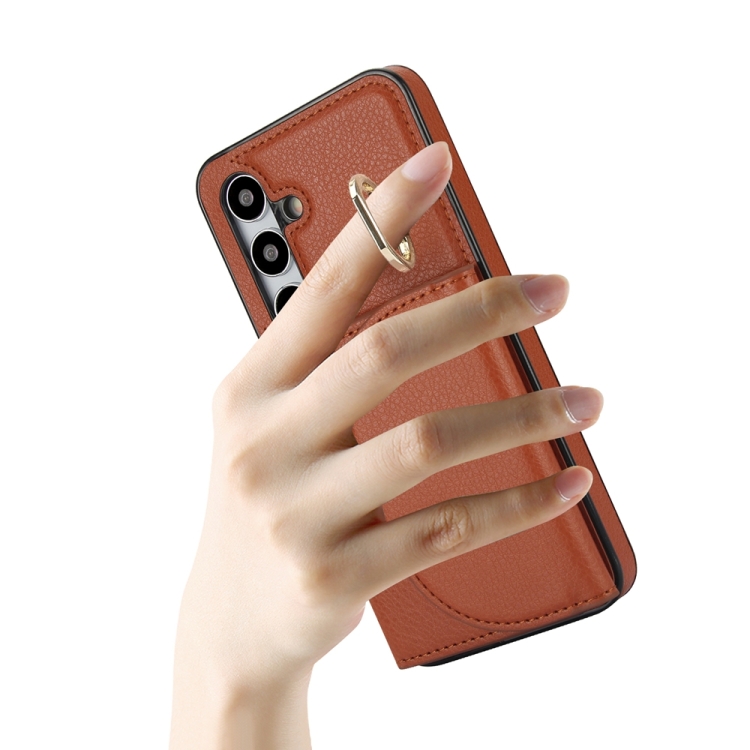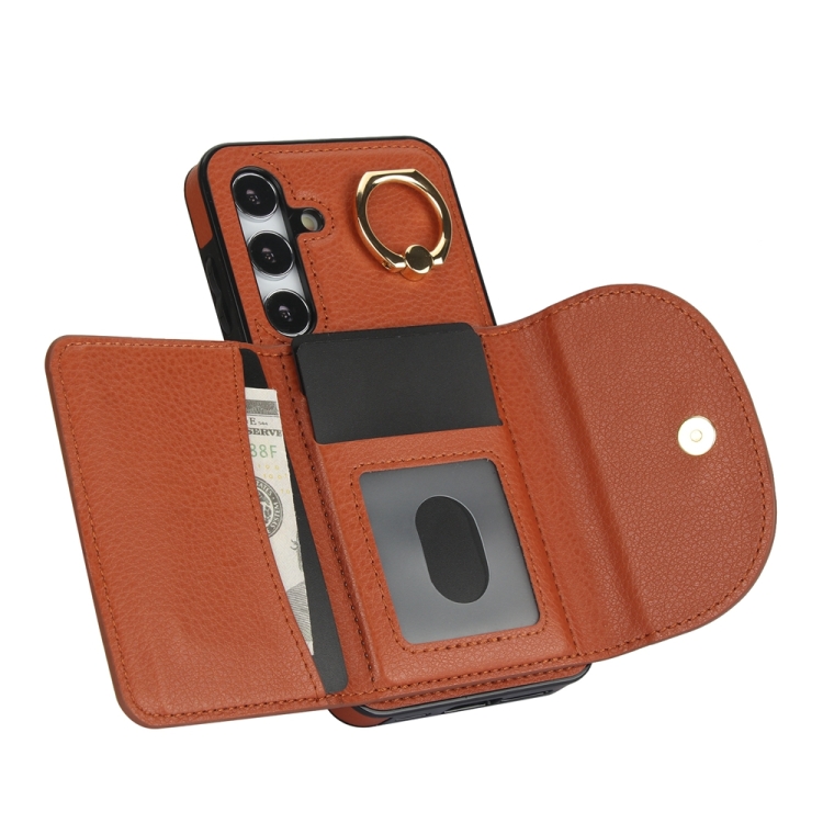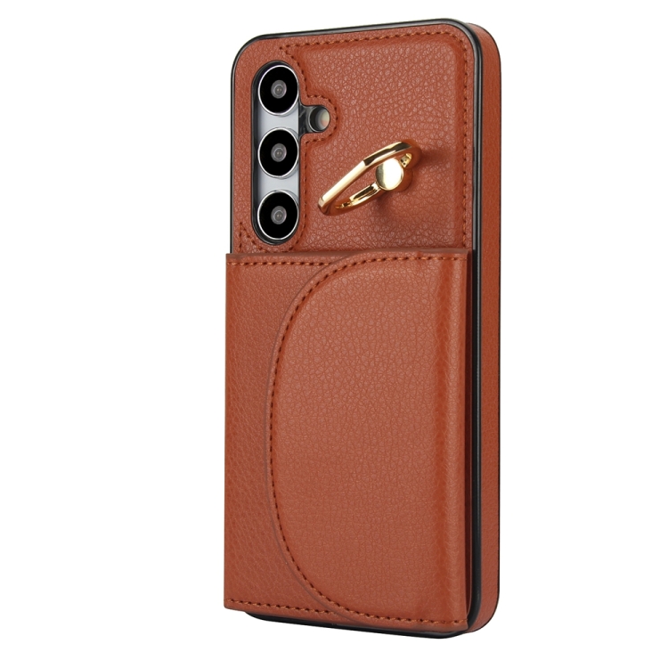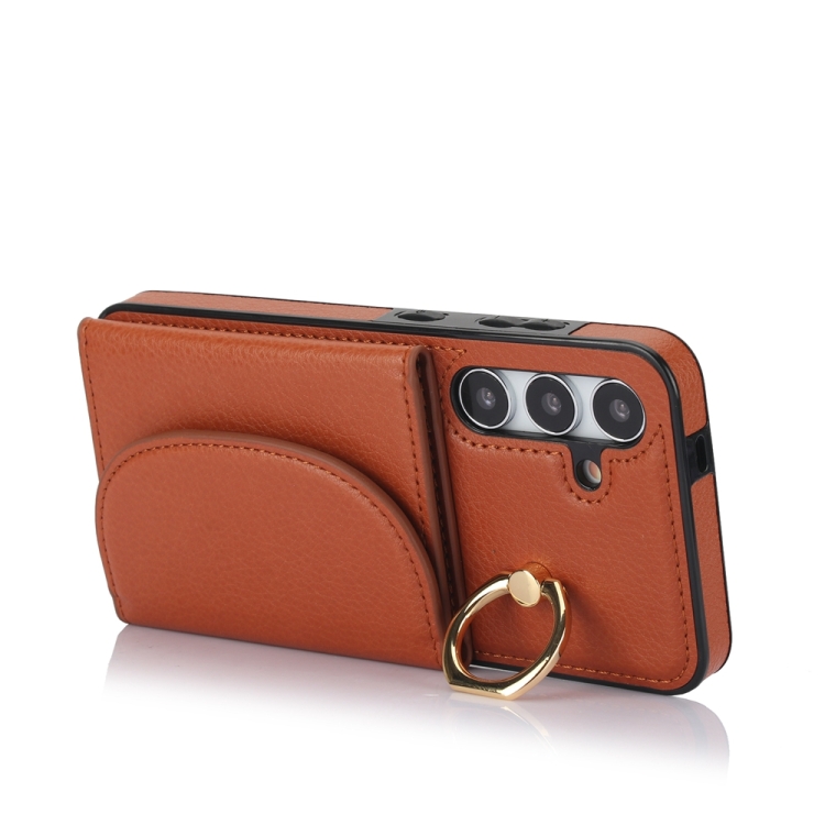 Funda para Teléfono Samsung Galaxy S24 5G Ym007 con Soporte para Anillo y Tarjeta (Marrón)
